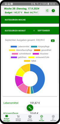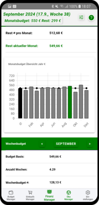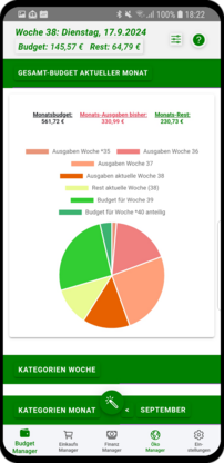 UND: Der Budgetmanager hat umfangreiche Kategorie Statistiken (wochen- und monatsweise) deiner Ausgaben so dass du dir leicht einen Überblick verschaffen kannst, wo es eventuell noch Optimierungspotential gibt. 😎 Mehr ...
