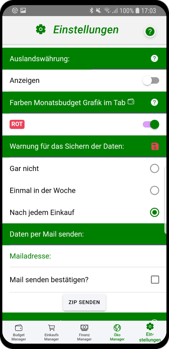Super einfach und komfortabel hast du damit alles, um nicht nur bares Geld zu sparen, sondern auch deine Umwelt zu schonen. Und den Umfang legst du im Ökomanager selbst fest!