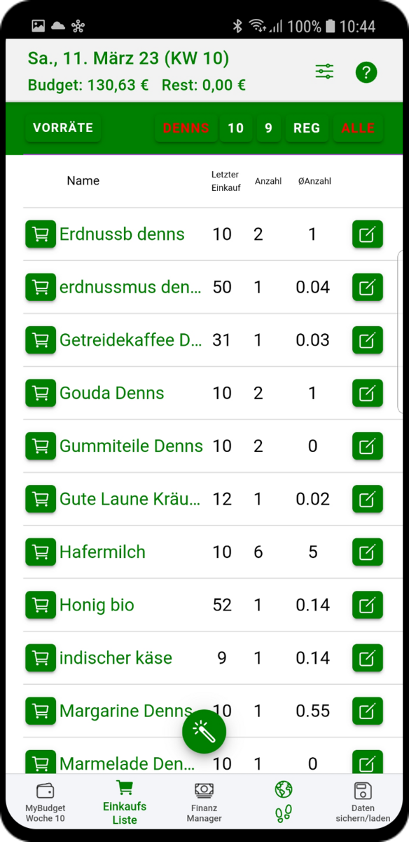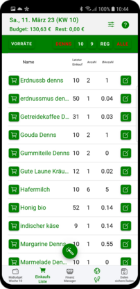 Und Klick: MEL zeigt ganz einfach, was zu Hause noch im Schrank steht. In den Vorräten kann man selektieren nach Shop, nach allen regelmäßigen Dingen, oder nach den Einkäufen der aktuellen und letzten Woche. Damit ist man mit wenigen Klicks überall immer auf dem Laufenden und weiß zum Beispiel, ob man vielleicht doch noch Honig einpacken sollte oder eben doch noch genug daheim hat. 😊